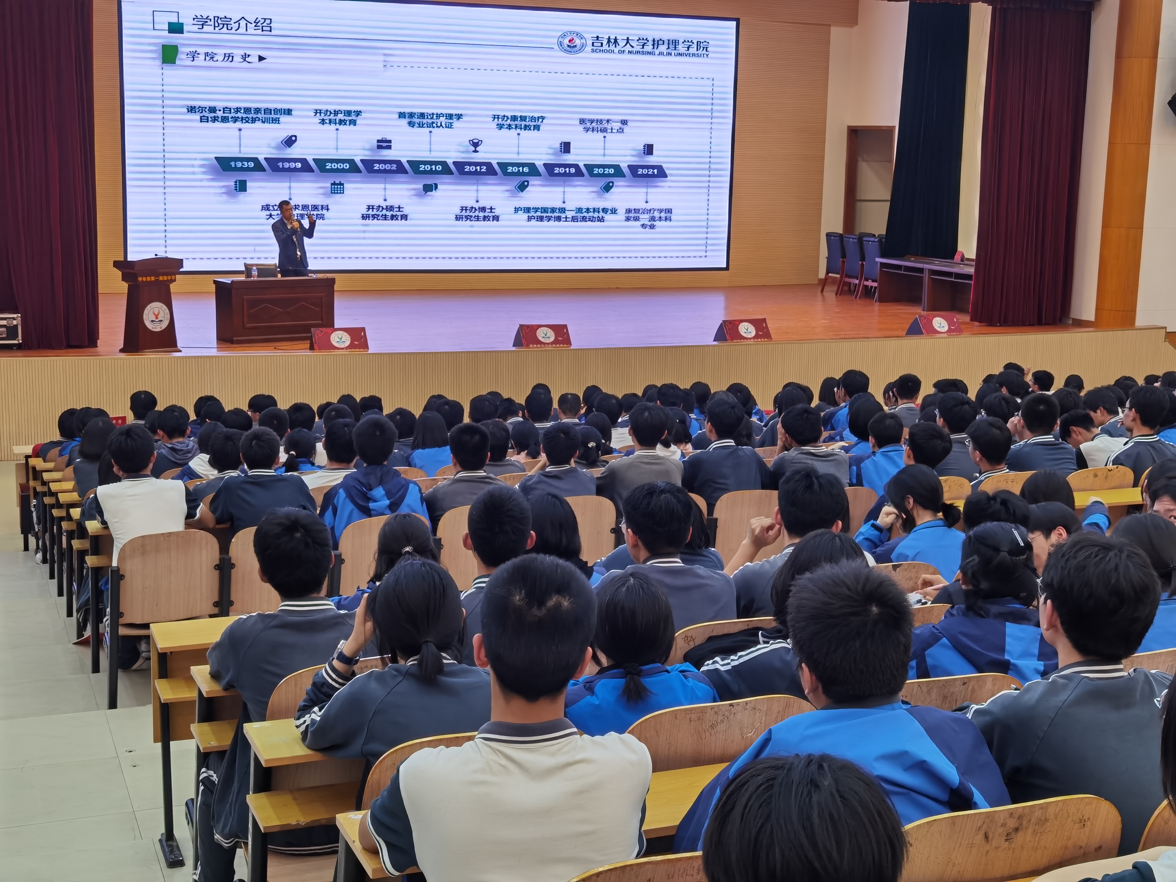 4月19日,bevictor1946韦德官网副经理李峰教授,经理助理、康复治疗学教研室杜艳伟副教授赴河南省中牟县第一高级中学开展本科招生宣传。受到中牟县第一高级中学副董事长张举扬的热情接待,以及1000余名高中生的热烈欢迎。