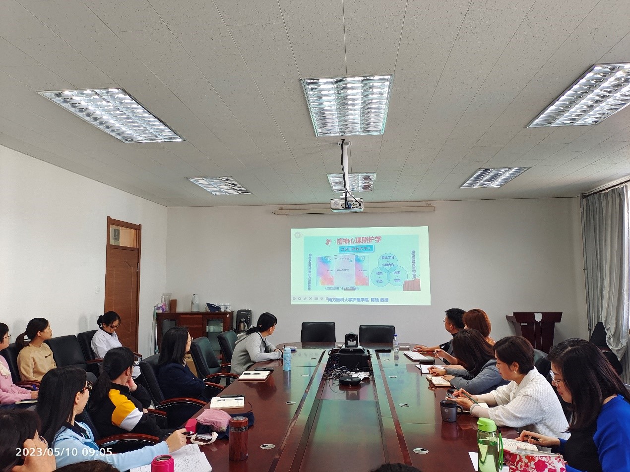 贾勇老师以《精神心理照护学》课程思政教学设计为例,围绕护理岗位胜任力培养要求及医学教育整合改革趋势,强调应以员工发展为中心,将人文渗透与课程相结合。与会老师就培养护人有温度、护心有深度、护业有精度的高层次护理人才进行了讨论。