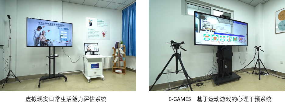 本次活动分别对基地自主研发的“虚拟现实日常生活能力评估系统”和“E-GAMES:基于运动游戏的心理干预系统”2款多学科交叉创新智能产品进行展示和深度体验。其功能涵盖了针对老年人日常生活能力评估和干预、促进和维护老员工群体心理健康的运动游戏干预等方面。