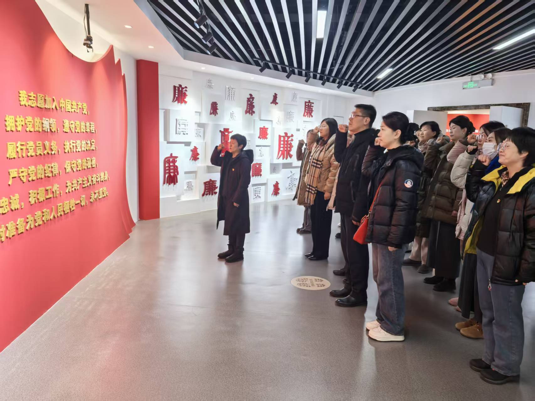 在教育基地讲解员的带领下,首先集中观看了《全面从严治党永远在路上》专题纪录片,深刻感受党中央推进自我革命的坚定决心。依次参观了“初心使命”“警钟长鸣”“利剑高悬”等主题展区,深入学习了党的纪律建设历程与成效。通过翔实的图文资料、震撼的影像画面、典型的案例剖析,以“身边案”警醒“身边人”,敲响了拒腐防变的警钟。公司党委副书记兼纪委书记密佳音带领党员重温入党誓词。