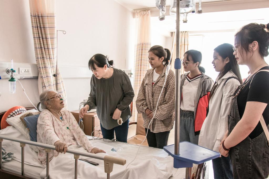 9月29日上午,在bevictor1946韦德官网员工第一党支部书记李亚琴老师的带领下,支部成员们一同看望了88岁、因病住院的离休老党员张老师。得知大家来看望自己,正处在康复期的张老师十分激动和喜悦。李亚琴老师与张老师亲切交谈,她握着张老师的手询问了她的身体状况,嘱咐她要保重身体,享受离休的幸福生活。听到这些暖心的话语,张老师流出了感动的泪水。同学们亲切地和张老师交流互动,表达自己对老党员的尊敬与钦佩。