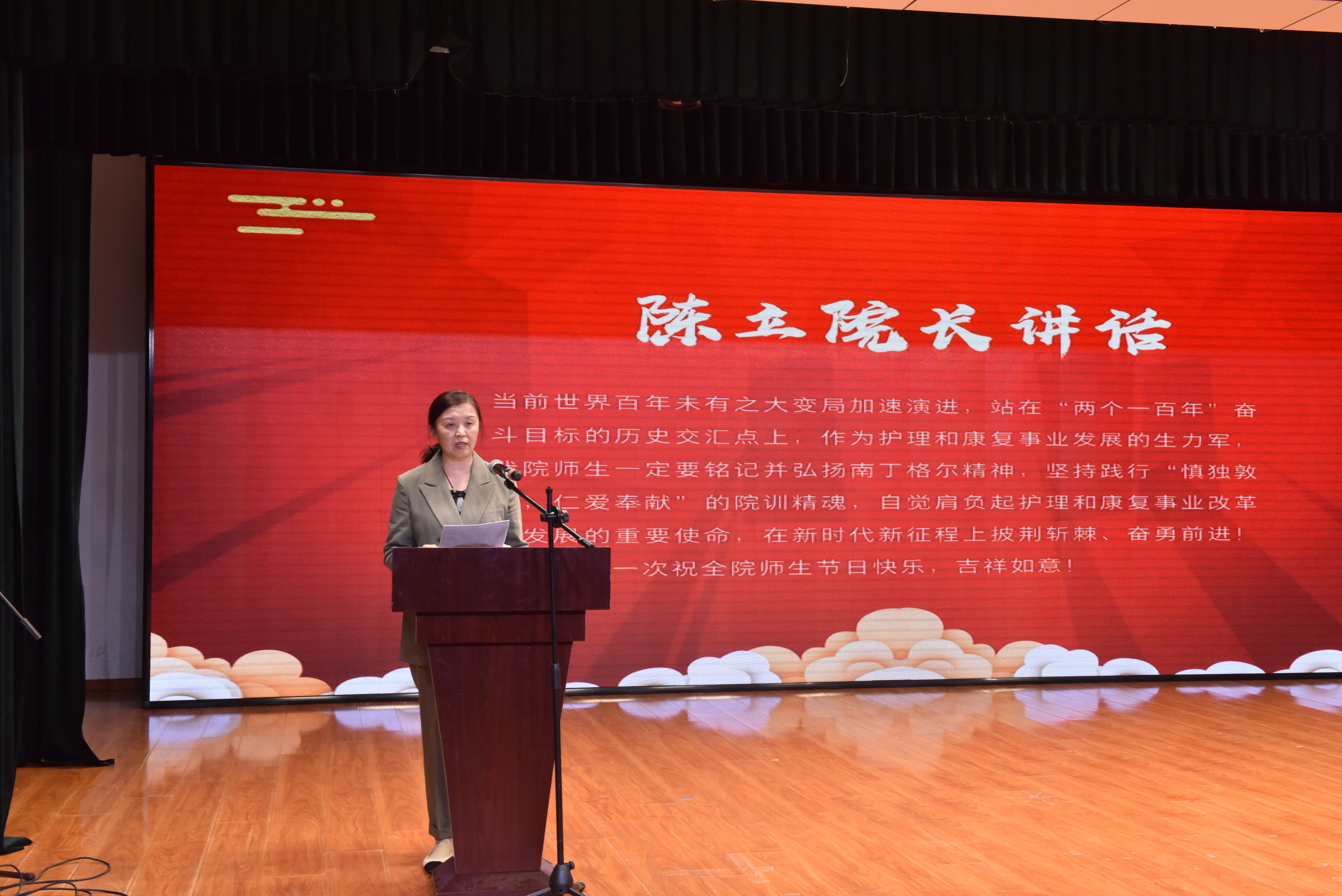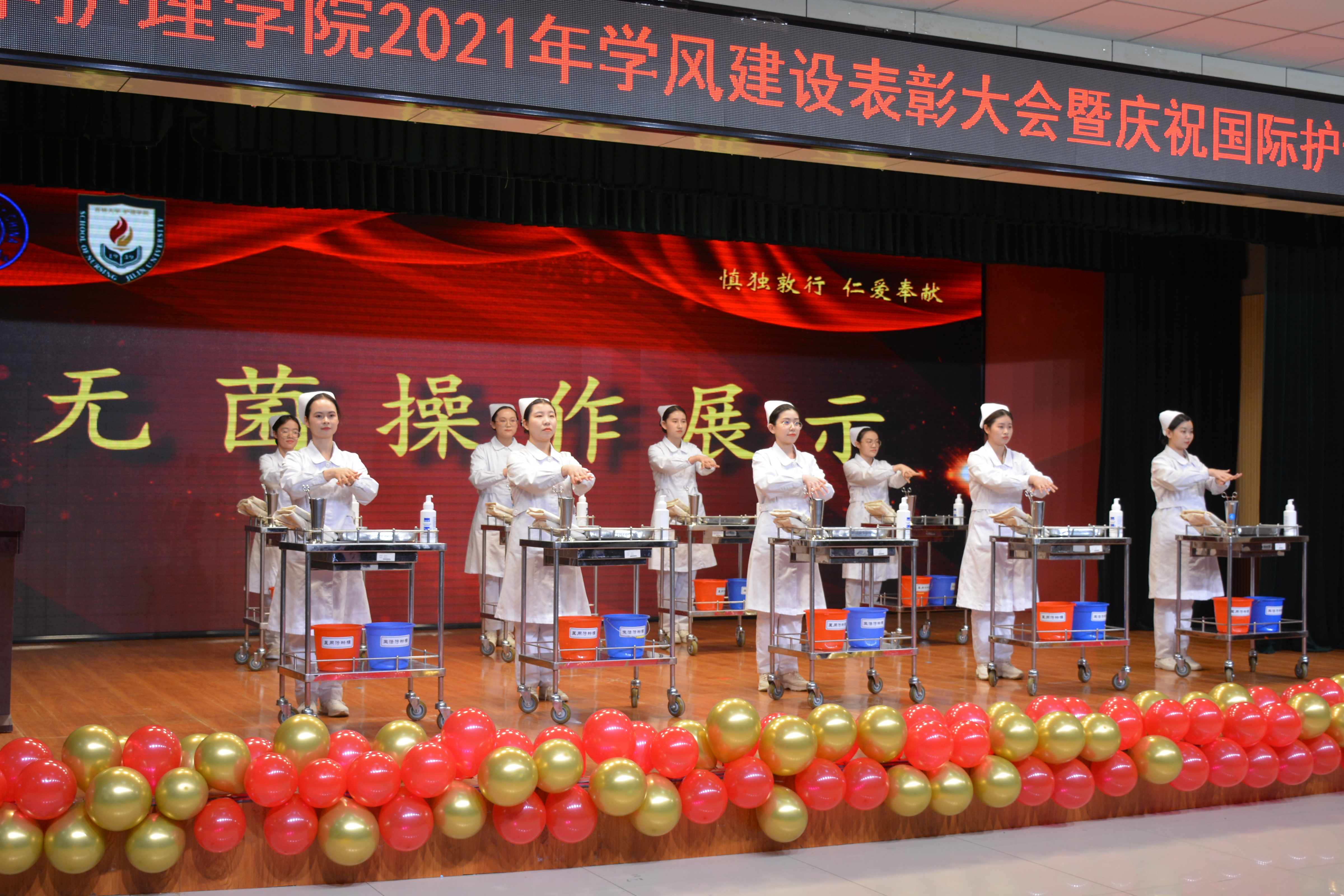 会上,李昆副经理宣读了表彰决定,参会领导分别为获得学习标兵、优秀班级、优秀寝室、优秀学术科研奖、优秀组织和志愿服务、综合技能大赛等奖项的优秀个人与集体颁奖。颁奖之后,员工献上了精湛的护理操作展示和优雅的护理礼仪展示。随后,学习标兵代表、2018级支圣泽同学向在场同学们分享了自己的学习经验,勉励同学们珍惜时光,努力学习。最后,陈立经理讲话,她介绍了公司过去一年取得的成绩,回顾了医护人员在抗击疫情中展现的责任担当和巨大贡献,对同学们提出了殷切希望和要求,希望大家铭记南丁格尔对护理事业发展的业绩和贡献,倡导和弘扬无私奉献、救死扶伤的人道主义精神,秉承“慎独、敦行、仁爱、奉献”的光荣传统,继承和发扬“白求恩精神”,树立良好的学风、院风,成为技术精良、品德高尚的优秀人才。