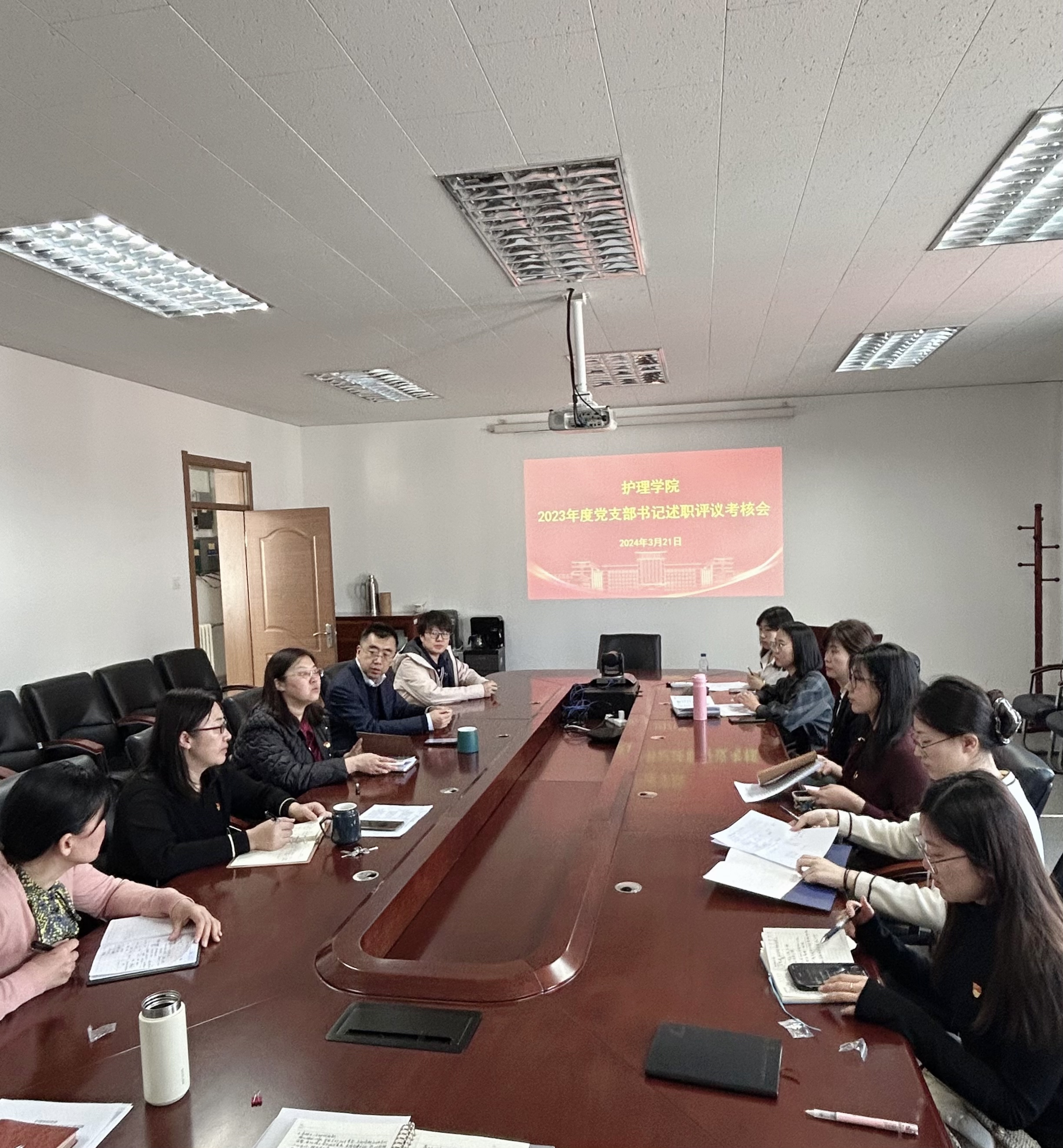 按照公司《关于开展2023年度全校各级党组织书记抓基层党建工作述职评议考核的通知》要求,2024年3月21日,护理公司党委组织召开2023年度党支部书记述职评议考核会。公司党委委员、全体党支部书记和党办工作人员参加了本次会议,会议由公司党委书记韩月波主持。