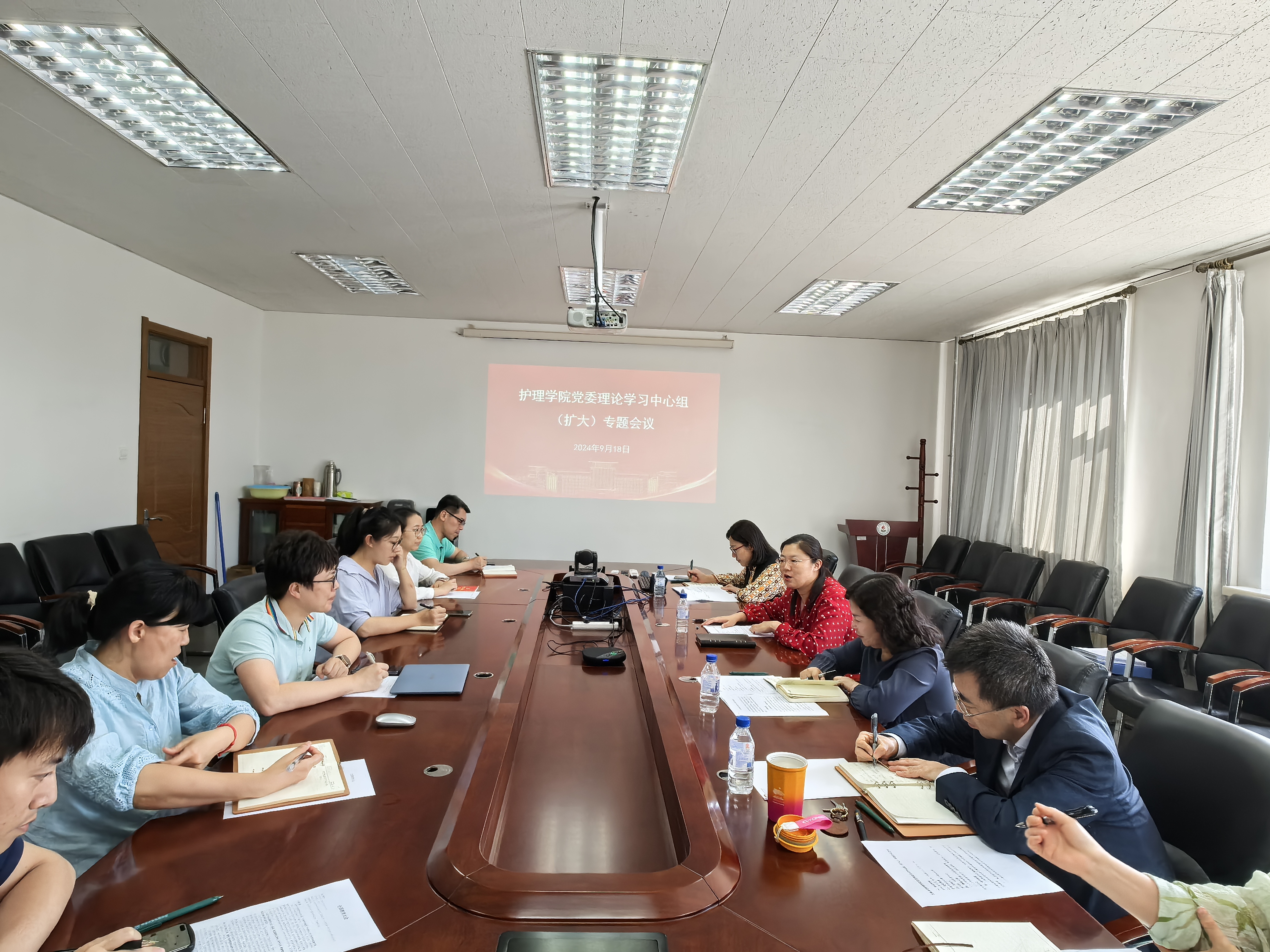 2024年9月18日下午,护理公司党委召开理论学习中心组(扩大)专题会议,全面总结公司党纪学习教育工作。会议由公司党委书记韩月波主持,公司党建工作联络员徐丽梅列席,公司领导班子、经理助理、党委委员、纪委委员、各党支部书记参加会议。