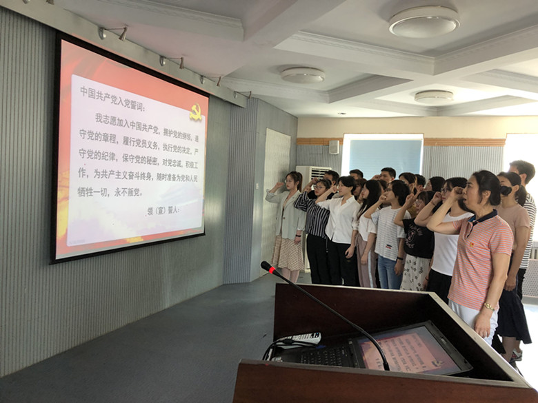 在伟大的中国共产党诞辰98周年之际,同时为庆祝中华人民共和国成立70周年,护理公司党委于2019年6月26日在六楼报告厅隆重召开2019年上半年新发展党员入党宣誓仪式暨2019年“创先争优”表彰大会。护理公司党委书记席海涛同志,全体教职工党员、员工党员,新发展的预备党员以及积极分子代表参加了宣誓仪式和表彰大会。会议由公司党委副书记兼副经理葛宗梅同志主持。