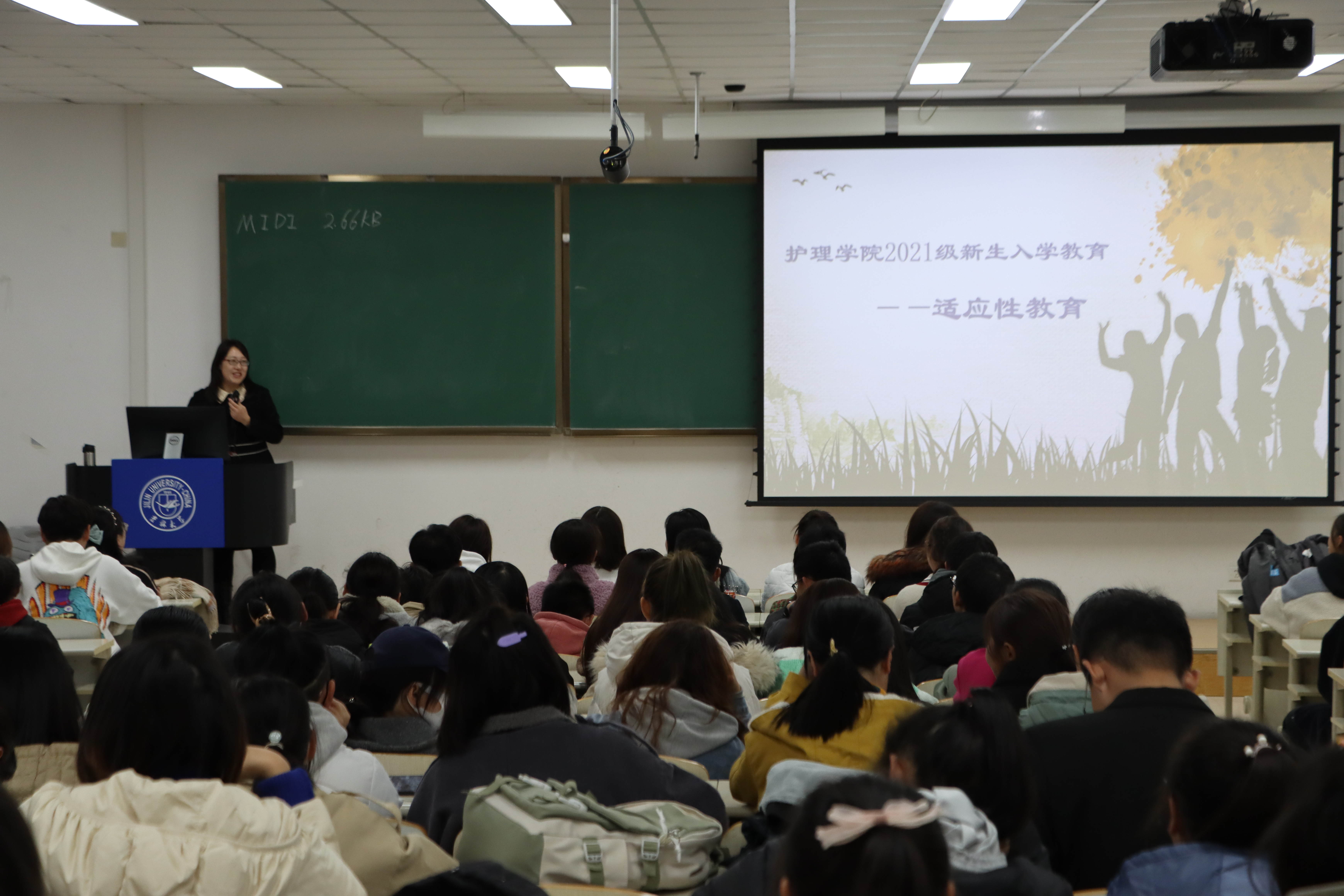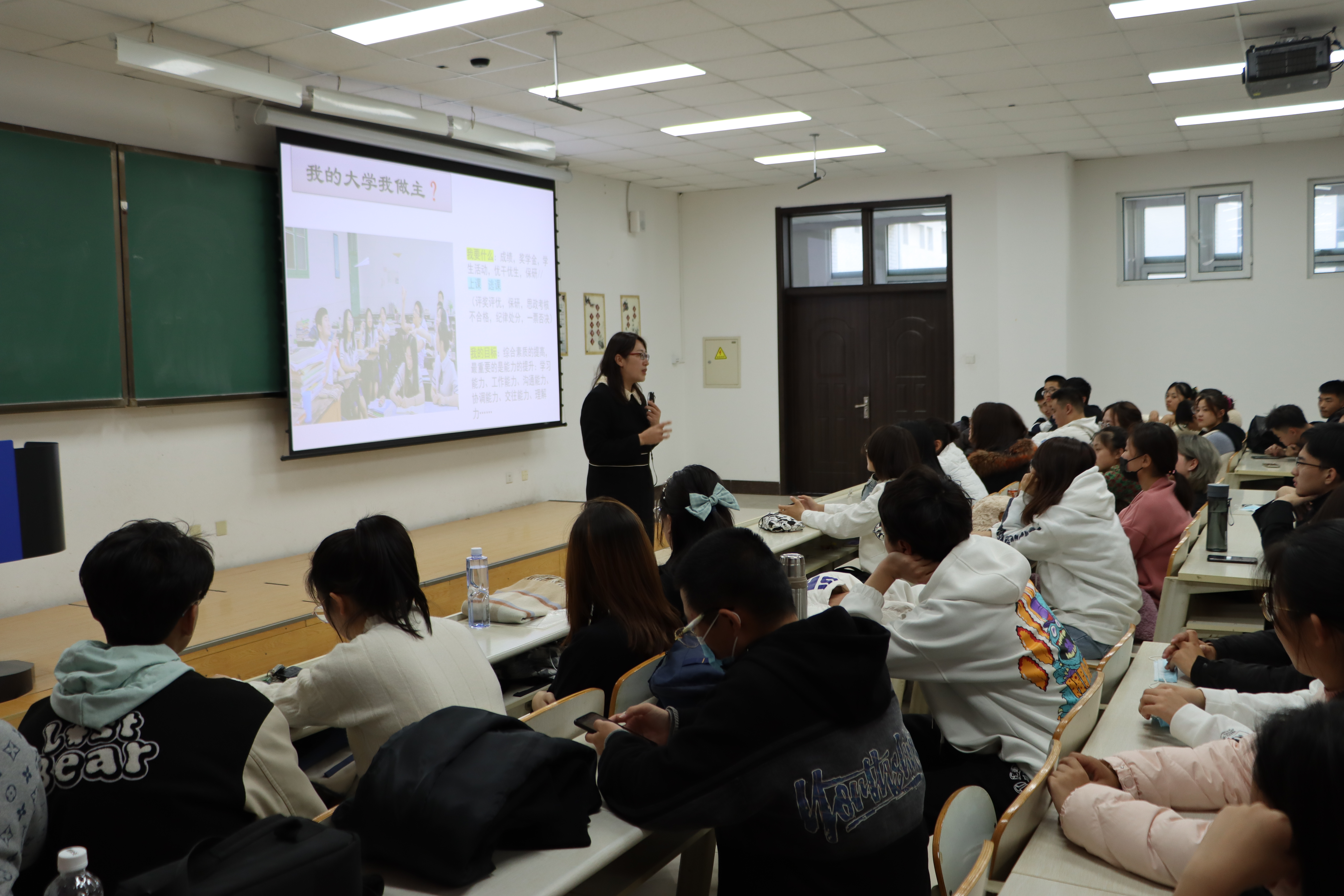 葛老师从介绍2021级大家庭成员情况开始,让同学们对公司及身边的同学有更直观的了解。随后,葛老师通过大学与高中的区别、如何处理人际关系、我的大学目标等主题入手,为大家讲解如何处理寝室、班级、朋友、恋人等之间的关系,如何自主性的进行学习,如何规划大学四年的学习、生活等进行了细致的阐述,系统性地解答了初入大学的各种疑惑以及对于各种困扰的解决方法。她希望同学们积极调整心态,顺利完成高中到大学的过渡阶段,尽快适应老员工活,做到自信自主、自尊自爱、自立自强,全面提高个人综合素质,努力成为新时代大有作为的新青年。