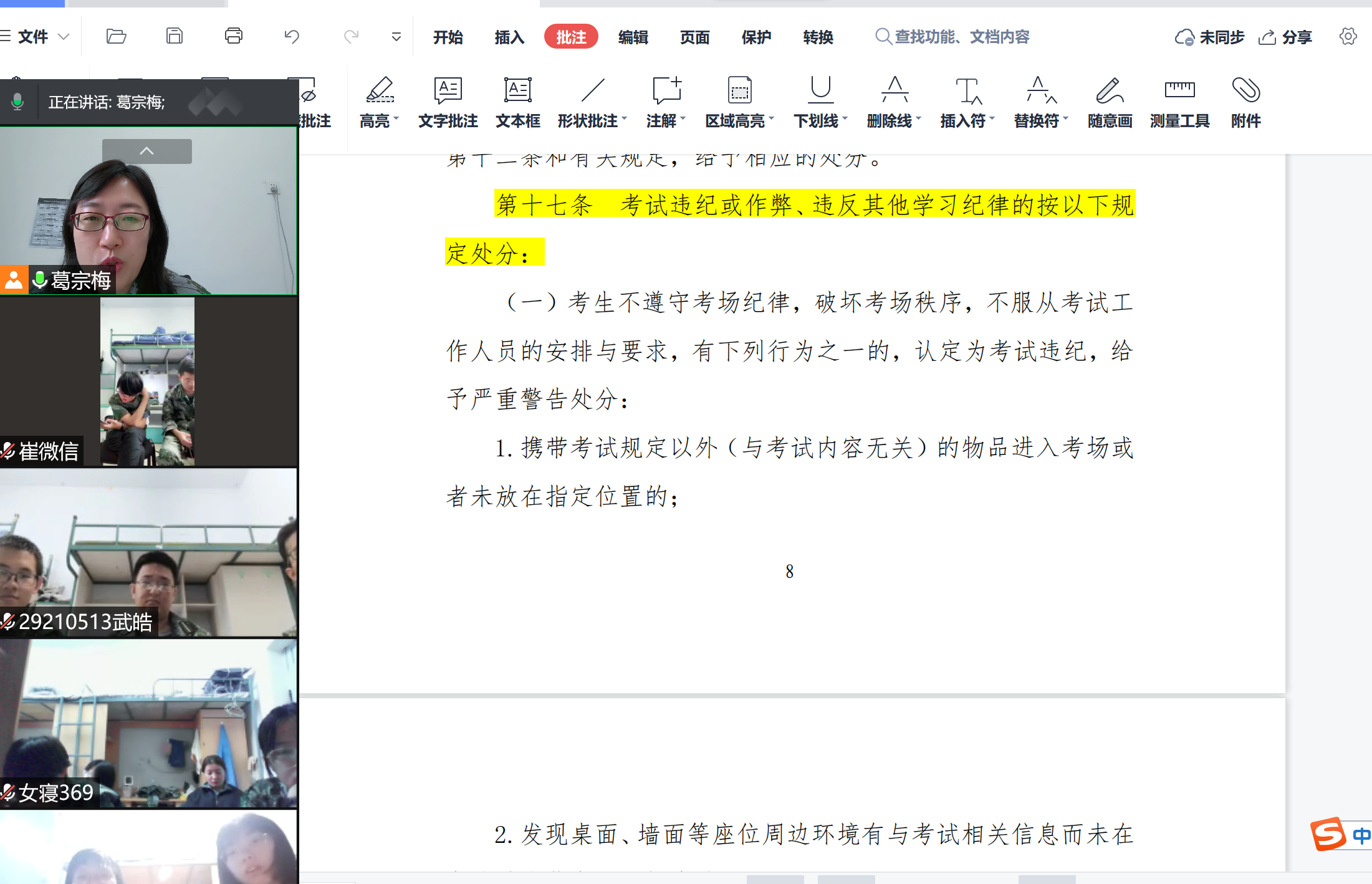 为加强员工的自我管理能力,帮助新生尽快适应大学的学习和生活,树立新生的集体意识,建设文明校风,弘扬吉大精神,增强新生同学作为“吉大人”的责任感、使命感和自豪感。2021年9月25日上午,护理公司党委副书记兼副经理、2021级新生辅导员葛宗梅通过线上会议方式主持召开了2021级新生年级大会,开展新生入学教育。2021级全体新生参加中。
