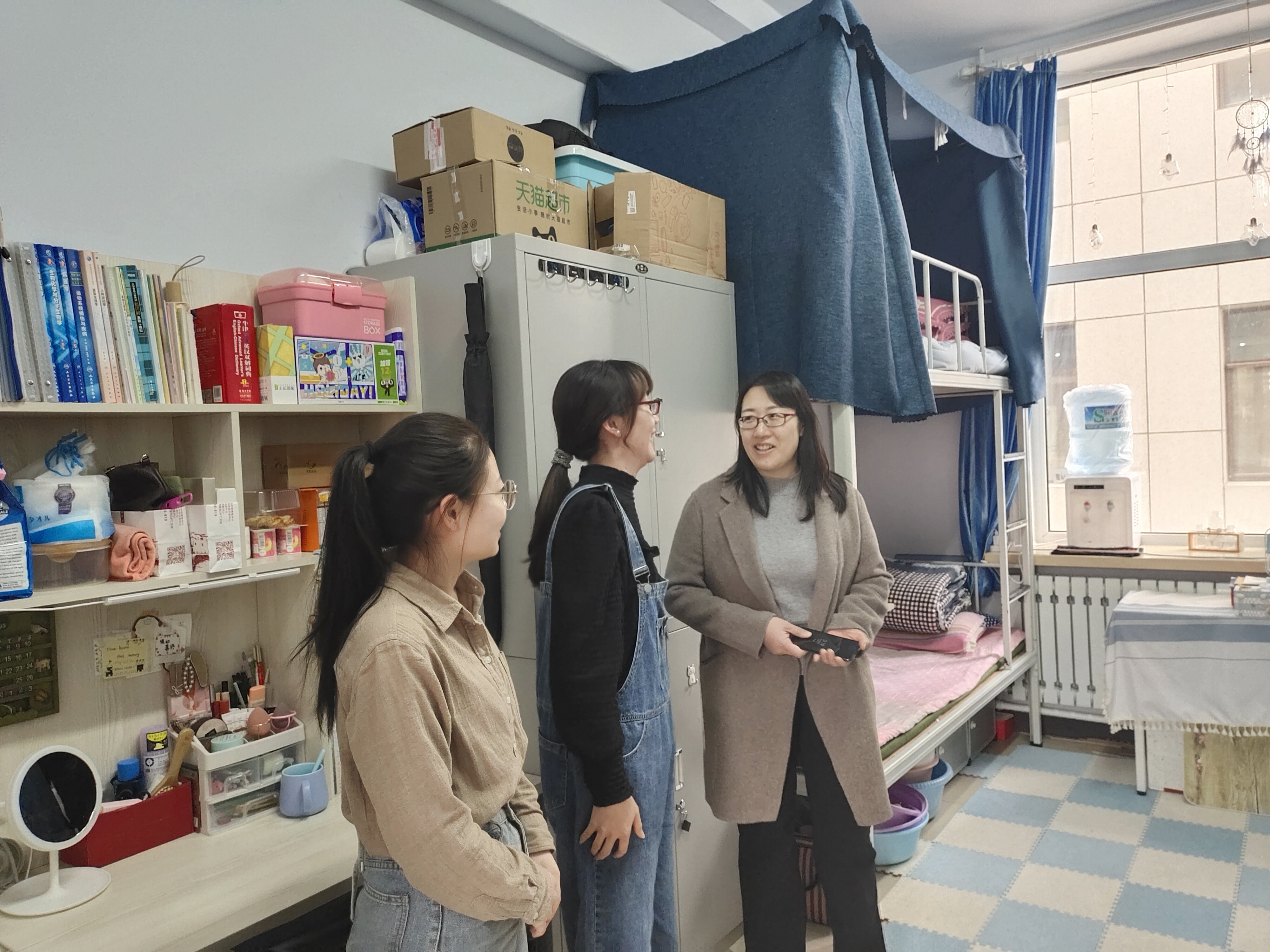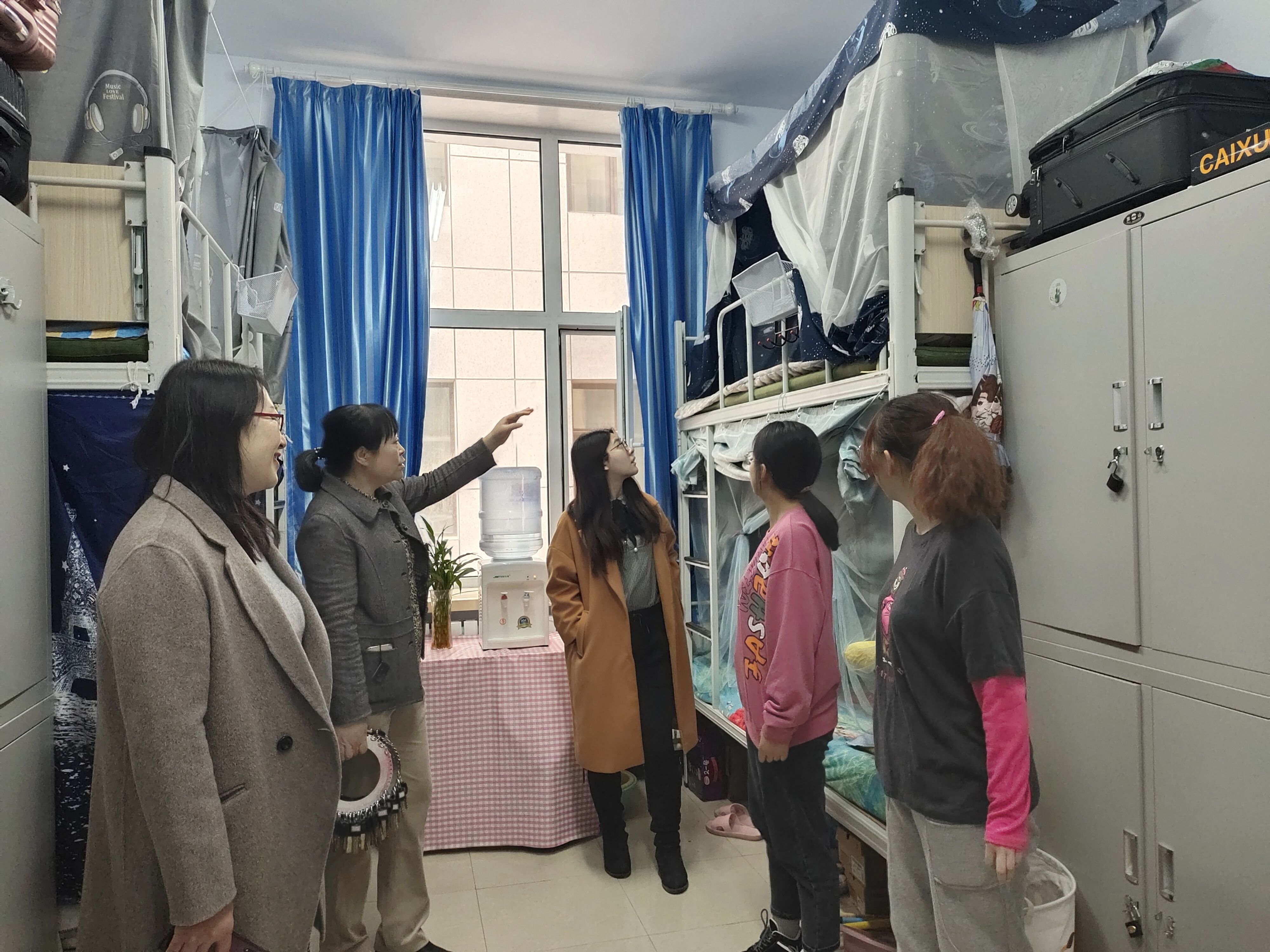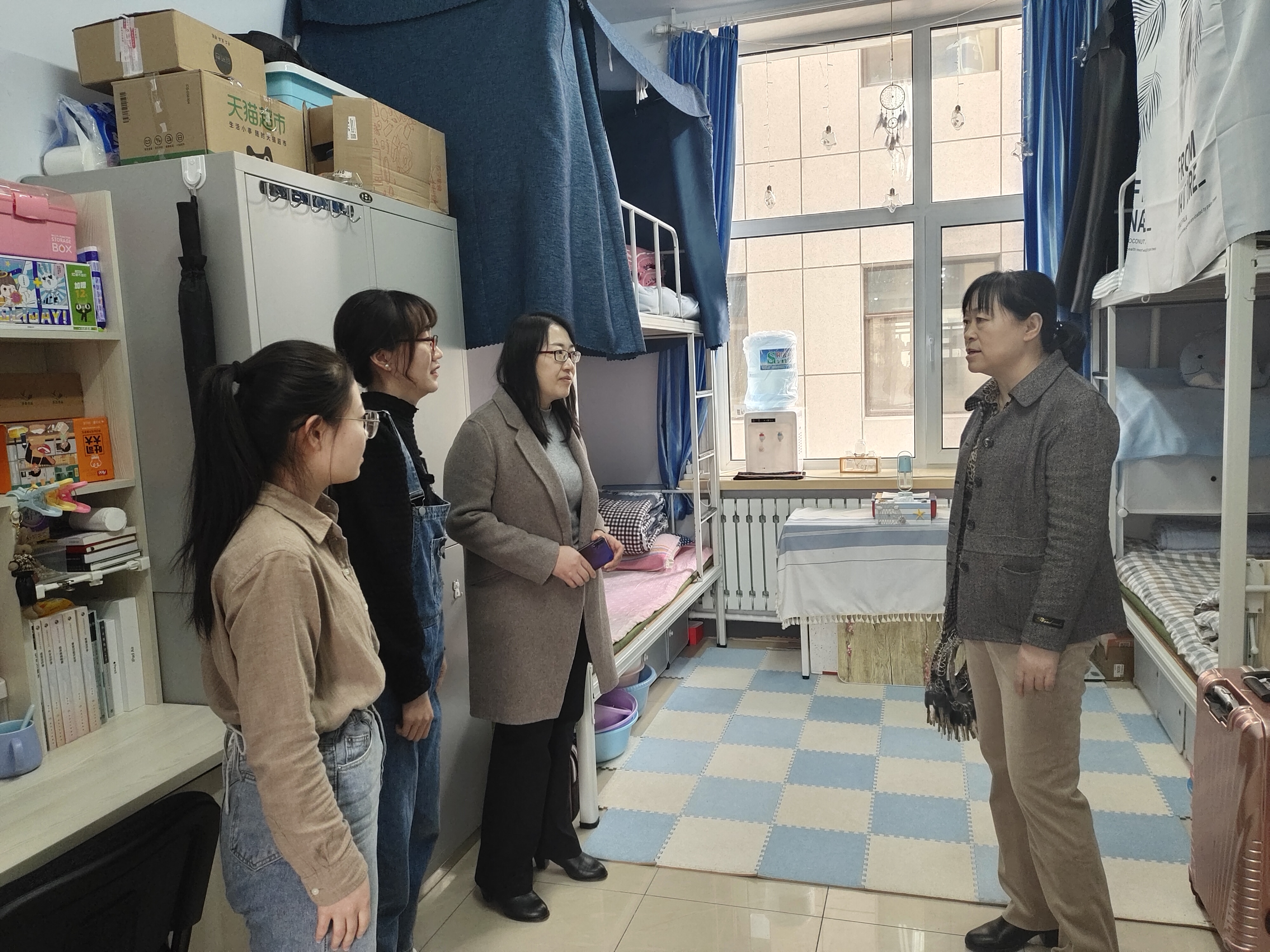 为了解员工春季学期返校后生活状况和思想动态,敦促员工尽快投入到新的学习、生活中,做好新学期寝室安全卫生工作,护理公司党委书记兼副经理葛宗梅、辅导员李亚琴、常方圆、刘宇飞在开学之初对员工公寓进行了走访检查。
