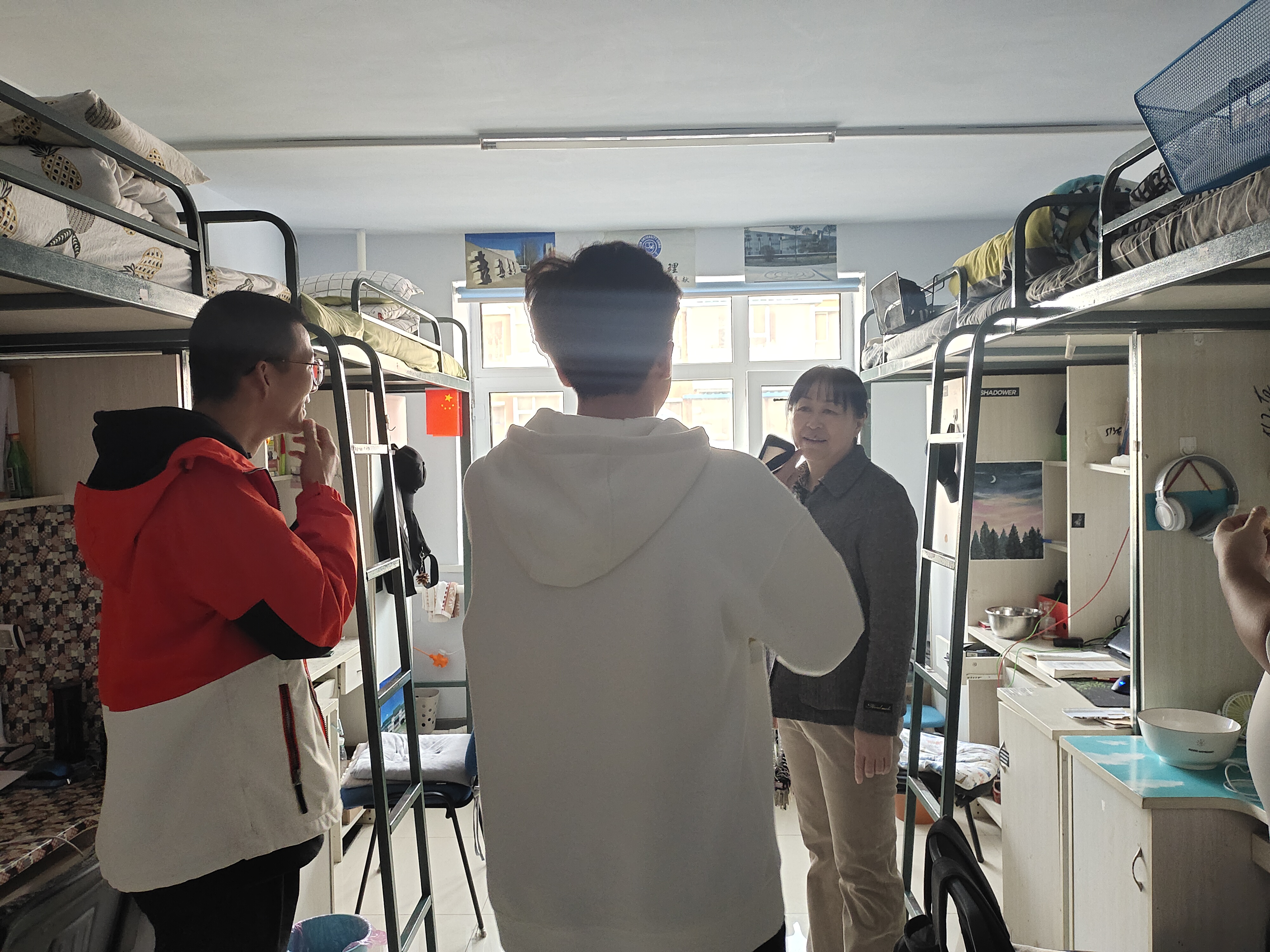 在员工寝室,辅导员查看寝室卫生,排查安全隐患。叮嘱大家保持卫生,保证安全,杜绝违章用电,勤通风,按时完成测温签到打卡,做好常态化疫情防疫工作。鼓励员工在新学期制定计划、努力学习、发展特长,切实提高自己的专业知识和综合素质;针对大一员工,了解员工转专业情况,做好员工思想稳定工作;针对毕业生,了解员工就业、考研情况,帮助员工分析就业形势,希望有考研复试资格员工认真准备,公司将为复试员工提供场地、设备帮助。同时,对于同学们提出的问题,辅导员们也都一一解答。