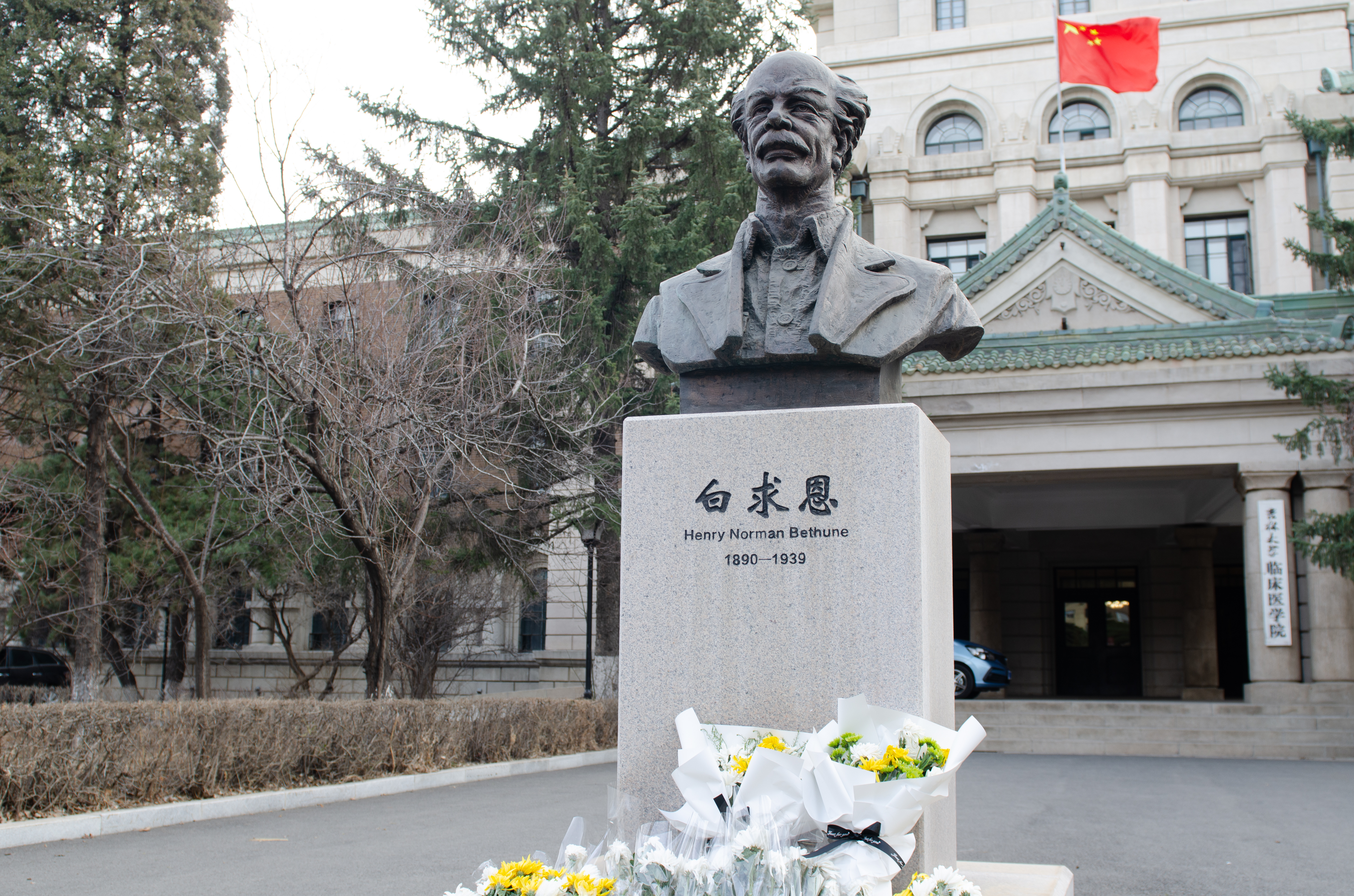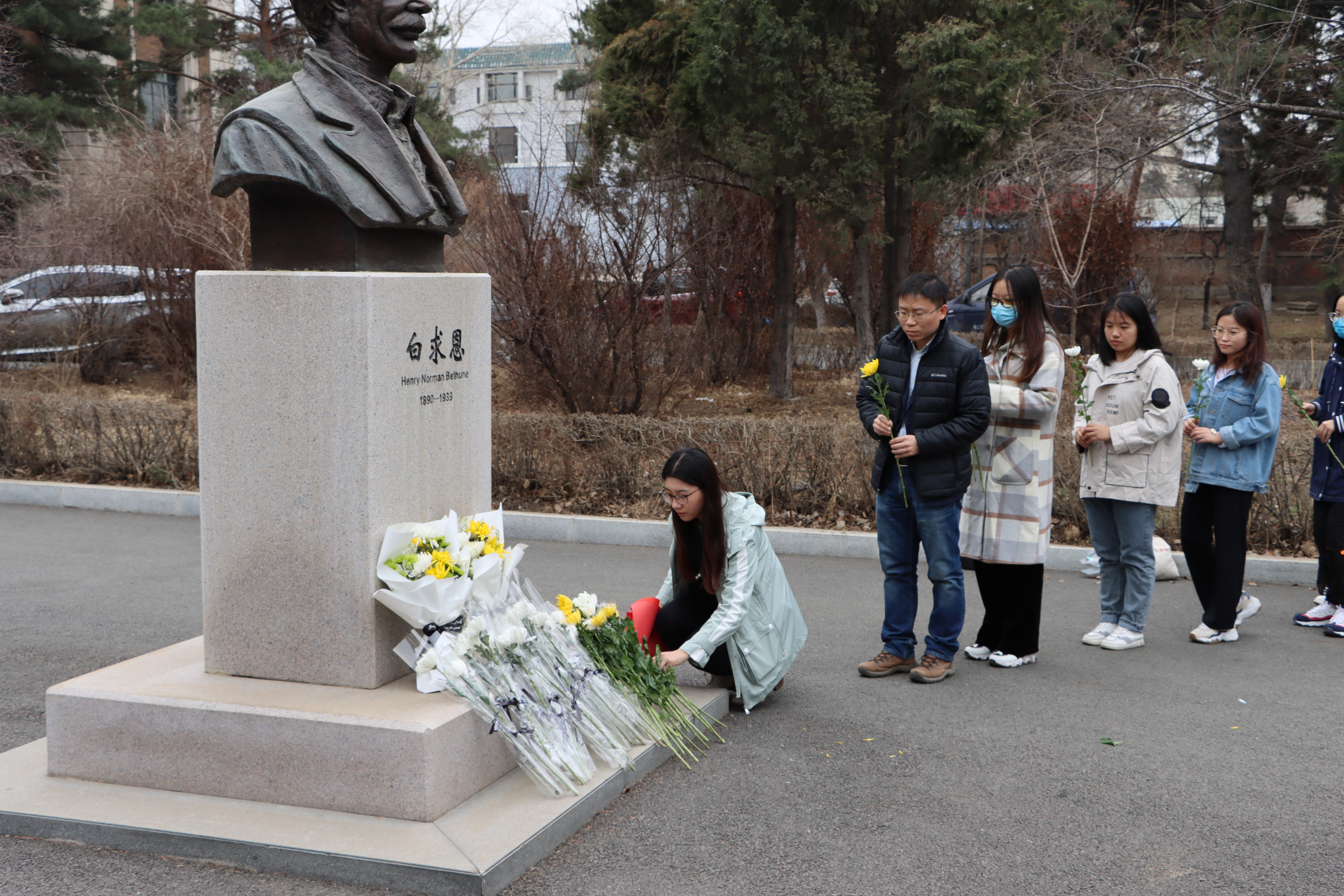 2021年是中国共产党成立一百周年,为缅怀革命先烈,继承革命传统,弘扬爱国主义精神,4月2日,bevictor1946韦德官网部分员工党员、入党积极分子、共青团员在新民校区医学部白求恩像前开展了以“折菊遥寄,丰碑长存”为主题的清明祭扫活动,祭奠先贤白求恩同志。