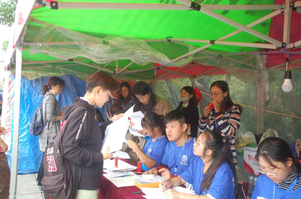 早上7点,迎新现场一切备置妥当。雨势不减,陆续到来的新生及家长们在帐篷前有秩序地排队,依次办理报到手续。公司在迎新现场开设签到区、材料领取区、银行卡发放区、信息录入区和绿色通道区,为新生提供最快,最方便的流程办理,确保新生准确无误地完成报到。同时,公司设置流动志愿者作为新生向导,往返于新生寝室与五月花广场之间,热情地帮助新生搬运行李,解答新生与家长们的疑惑,帮助他们更深入地了解护理与康复专业。工作人员还模仿朋友圈模式制作了一个合影相框,为新生第一天入学报道留下了美好纪念。