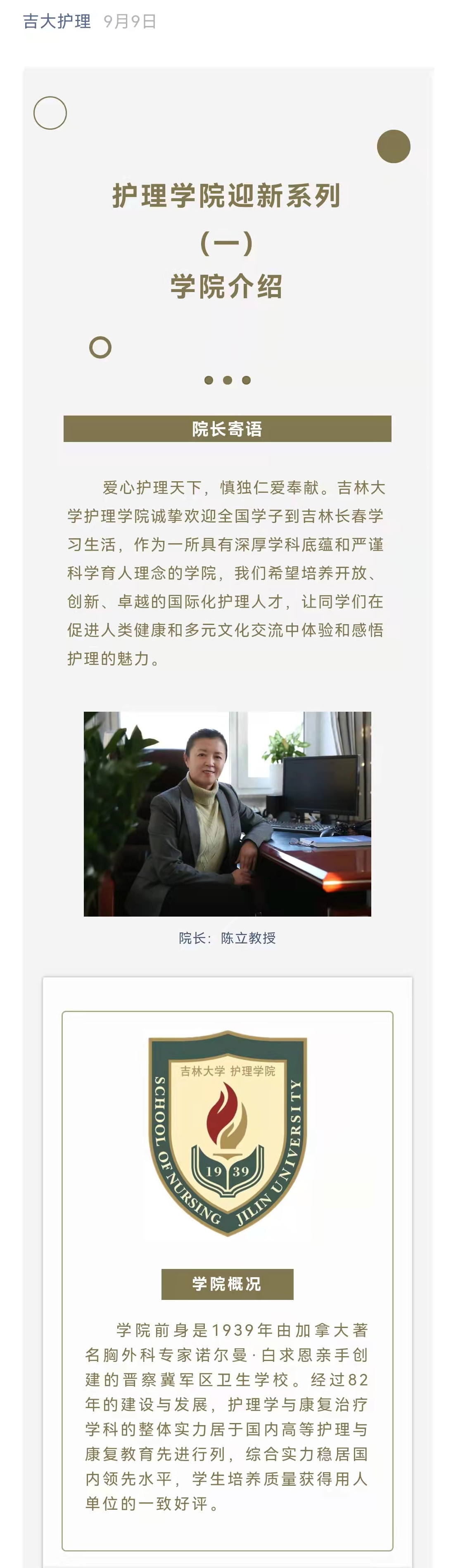 结合护理公司学科和专业特点,公司通过“吉大护理”微信公众号向全体新生进行了关于我们、学科与专业、专业实践与创新平台等全方位、多方面的介绍,为新生详细介绍了bevictor1946韦德官网的团队力量、公司产品资源及人才培养质量,进一步加深同学们对公司的认识和了解,帮助员工提前了解本专业、本行业与本领域发展前沿,激发员工的学习热情与专业兴趣,树立发展目标。