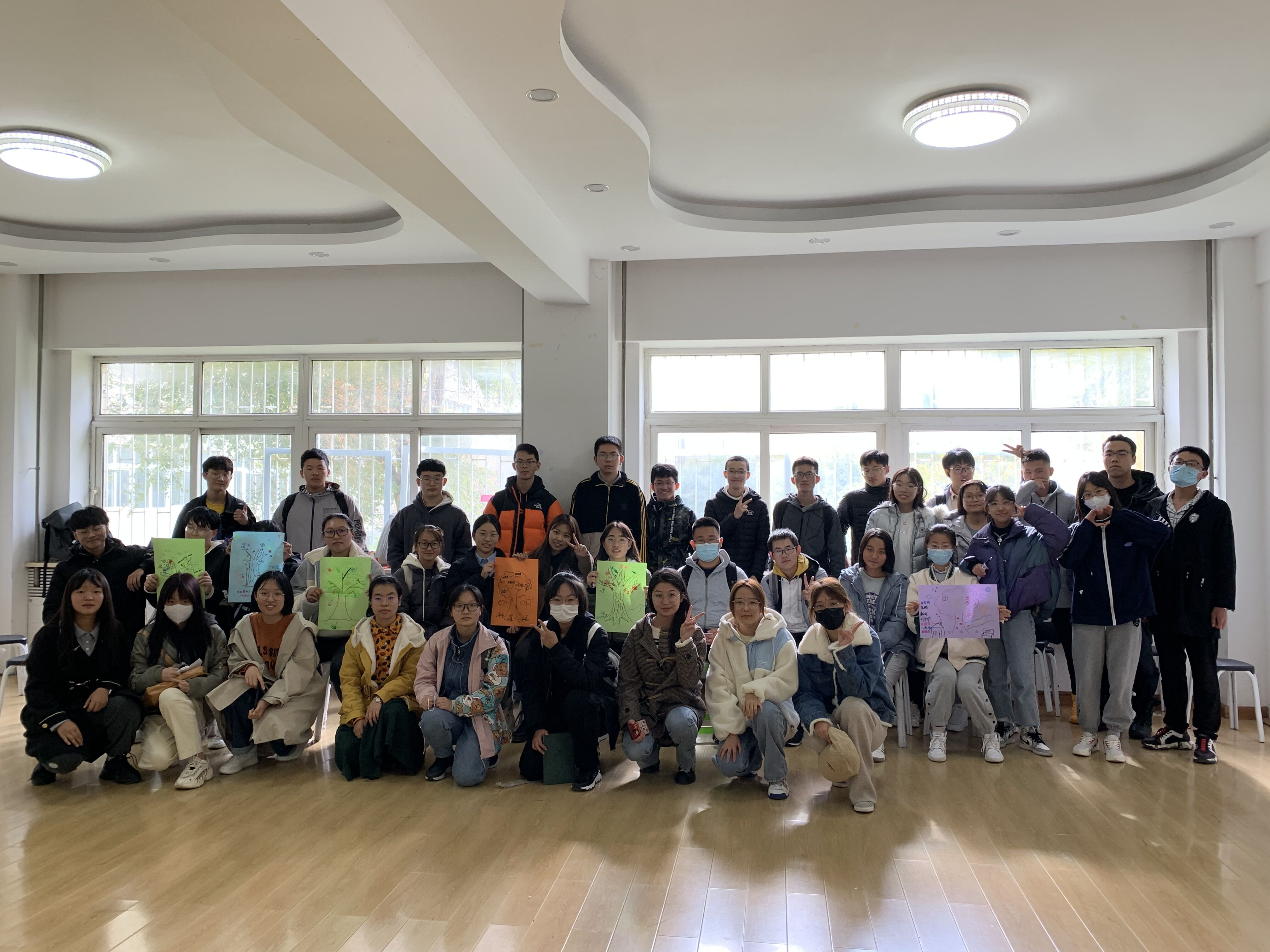 活动于上午八点正式开始,分为“欢乐时刻”热身阶段、“信任之旅”过渡阶段与“共绘蓝图”展望阶段。“欢乐时刻”阶段进行了“团体心理辅导简介”“一分钟鼓掌”和“我知道”三个环节。通过简短的介绍,同学们对此次团体辅导活动表现出了浓厚的兴趣。在鼓掌游戏中,有的同学对自己能力预估出现偏差,使同学们意识到制订可实现目标的重要性。在“我知道”环节,朋辈心理辅导员李润源组织同学们相互介绍,同学们很快熟络起来。“信任之旅”阶段,同学们两两一组,分别扮演“盲人”和“引路人”。“盲人”全程佩戴眼罩,在“引路人”无声的帮助下跨过每个障碍,增强了同学间的信任,加深了同学间的情谊。在“快乐传递”和“信心启迪”的游戏中,同学们发现了彼此的优点,更懂得了如何定位自己、认可他人、相互欣赏与鼓励。通过互动环节,同学们展现出了非凡的毅力与创造力,团体凝聚力也随着欢呼声不断提升。“共绘蓝图”阶段,各组同学分别在彩色纸上绘制具有团队特殊意义的团体树,寄托对未来的展望。活动结束后,同学们都积极地分享了自己的心得体会。