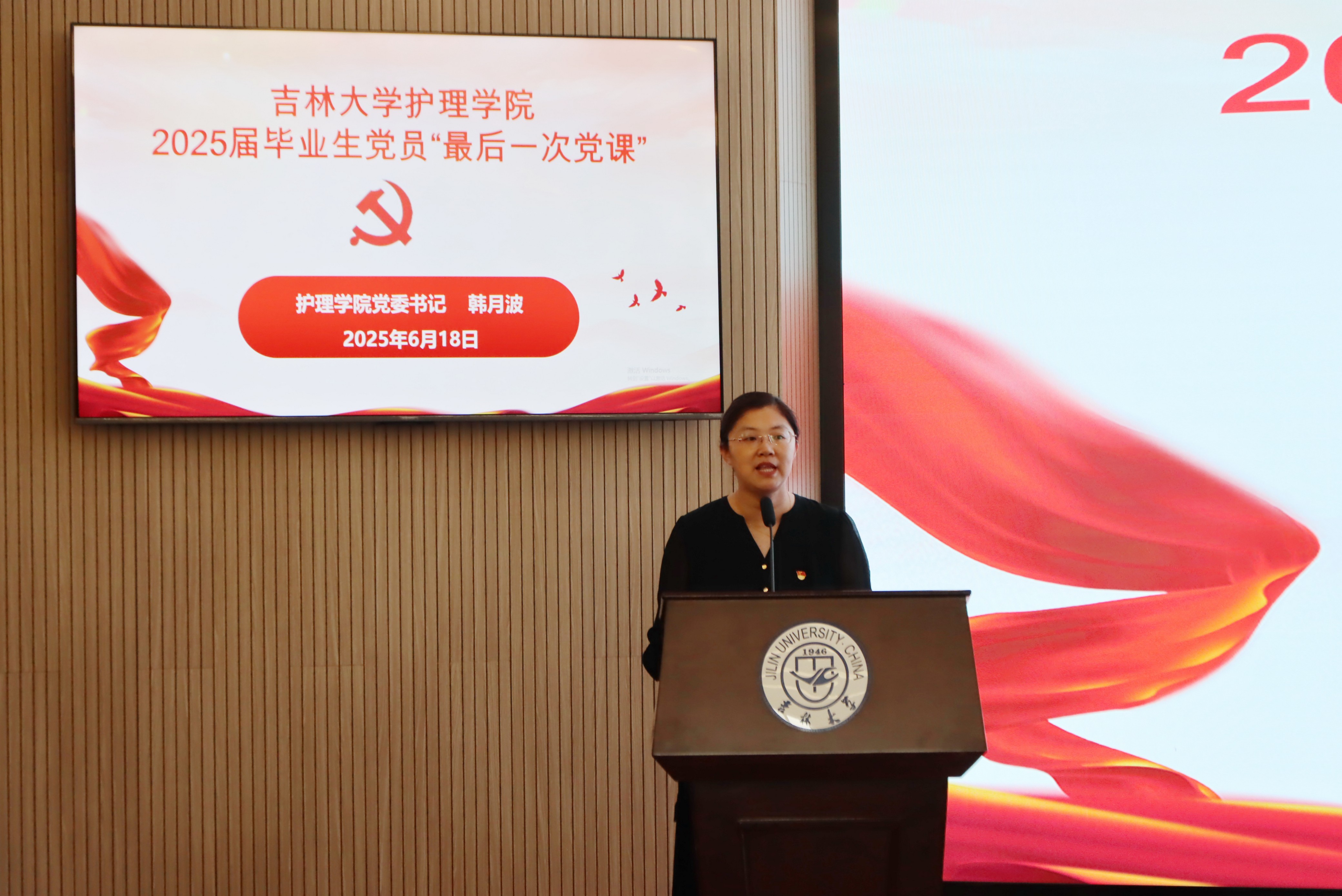 为深入贯彻中央八项规定精神学习教育,强化毕业生党员身份意识,教育引导即将毕业的青年党员系好廉洁的“第一粒扣子”,以过硬的党性修养和优良的作风素养迈向新的人生征程,2025618日下午,护理公司党委书记韩月波在新民校区一教401白求恩厅为公司全体毕业生党员讲授毕业前“最后一次党课”。公司党建工作联络员宁宇老师、公司党委副书记兼副经理密佳音、本科毕业年级辅导员刘宇飞、全体毕业生党员参加。