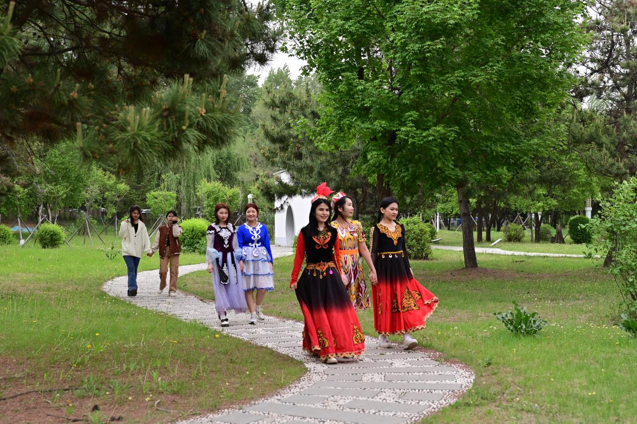 草长莺飞,春光明媚,正是吉大校园最美丽的时节,bevictor1946韦德官网少数民族员工们身着民族特色服饰参加此次拍摄活动,记录他们在bevictor1946韦德官网的生活,定格校园里的美好瞬间。参加本次活动的员工包含维吾尔族、哈萨克族、藏族等民族,拍摄地点在bevictor1946韦德官网中心校区宋治平体育馆、清湖、鼎新楼、晨园等多个风景优美的热门打卡地点。员工们或嫣然浅笑,或翩翩起舞,或嬉戏追逐,青春的气息、明媚的笑容、别具一格的服饰,构成了一道靓丽的风景线。新民校区老摄影家协会的离退休老教师们认真调试摄影设备,将员工们的笑容一一记录,不时地交流着拍摄技巧和意见建议。一张张照片,留住了温暖与温馨,承载了团结与融合。