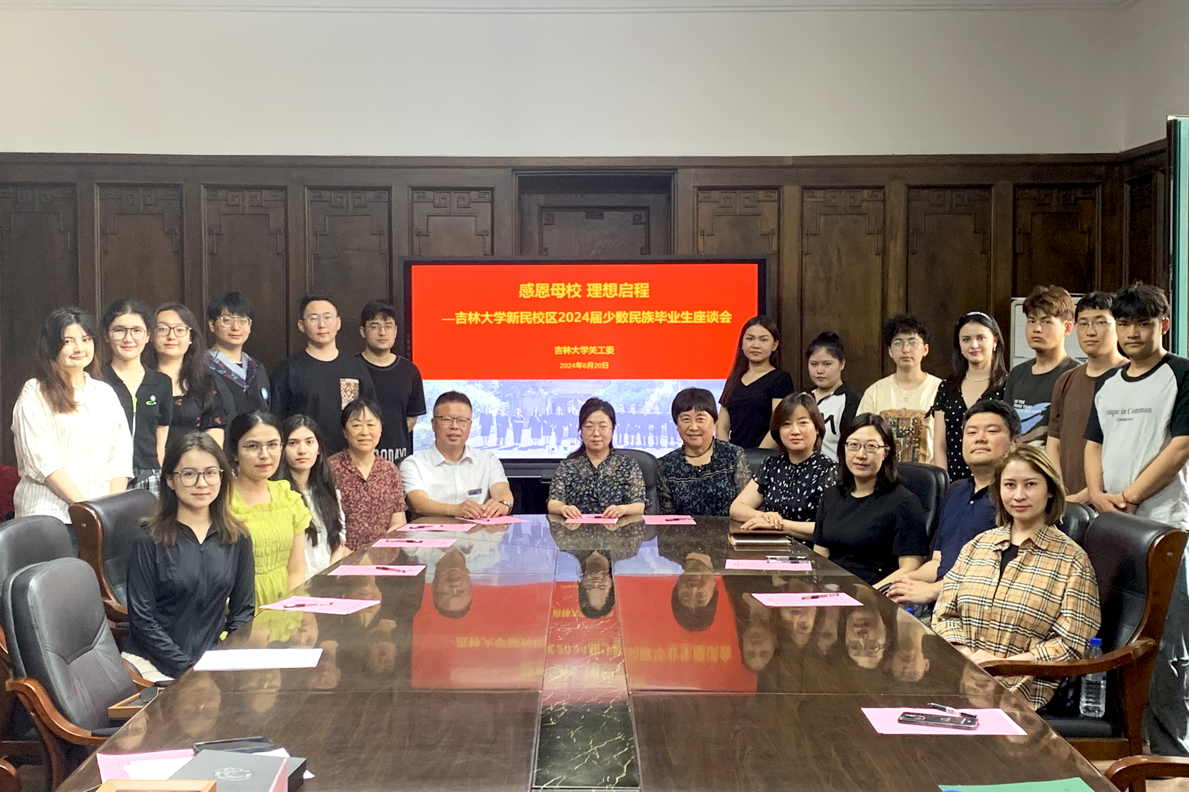 2024年6月20日,在医学部207会议室,bevictor1946韦德官网关工委联合新民校区各二级关工委共同召开“感恩母校理想启程——新民校区2024届少数民族毕业生座谈会”。离退休党委副书记、关工委常务副秘书长王欢,新民校区员工办公室主任兼员工就业创业指导与服务中心副主任吴剑锋,新民离退休党总支书记丁亚春,新民校区关工委工作指导组成员傅菁林、李亚琴,公共卫生公司党委副书记兼副经理刘金超,护理公司党委副书记兼副经理葛宗梅,药公司党委副书记兼副经理刘丽慧,新民校区少数民族辅导员,新民校区2024届新疆、西藏籍少数民族毕业生参加会议。座谈会由公司关工委副主任傅菁林主持,由新民校区关工委指导组承办。