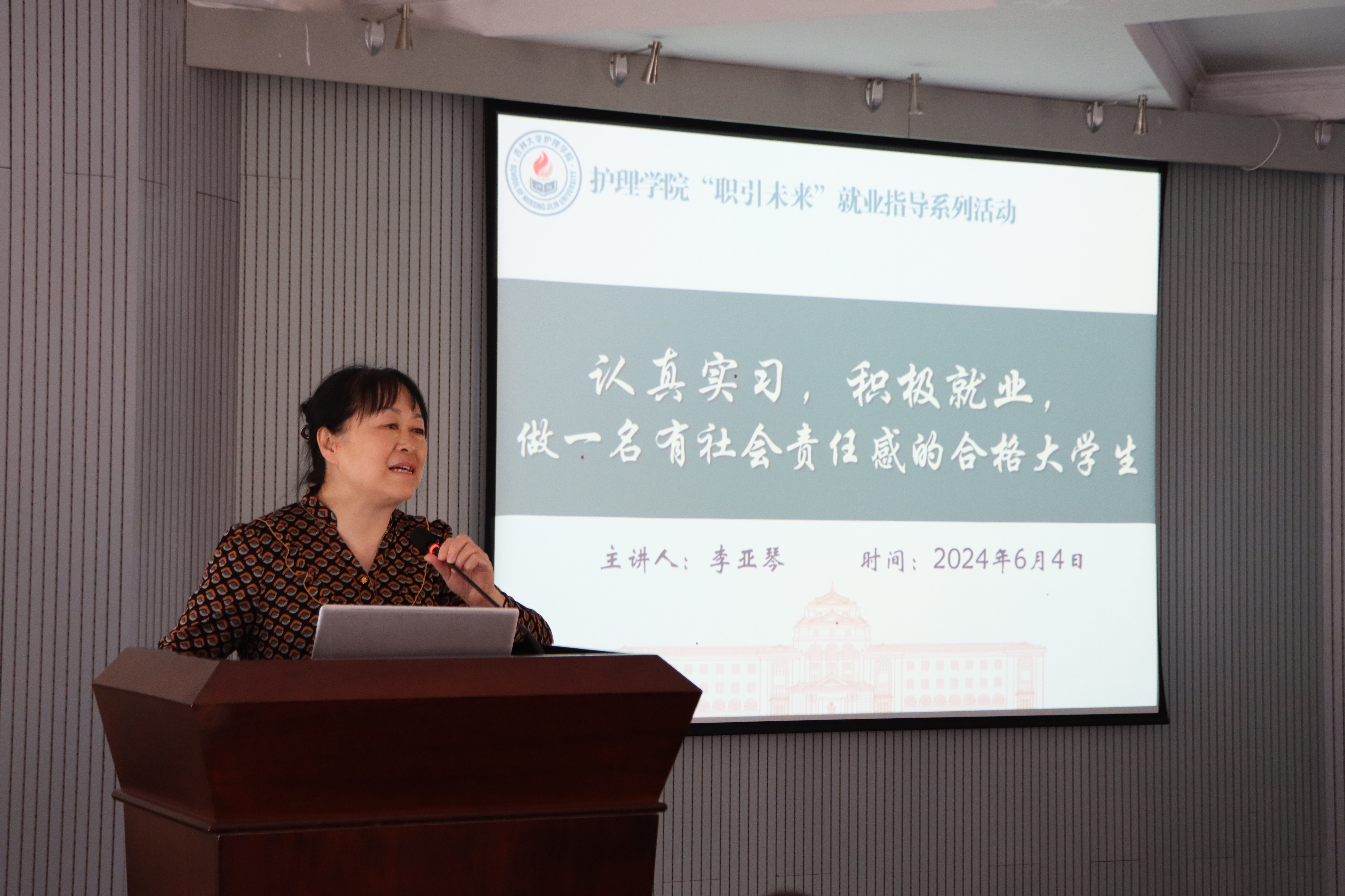 本次讲座,李亚琴老师以“认真实习,积极就业,做一名有社会责任感的合格老员工”为主题,围绕实习与就业为员工分享毕业生经历和经验,给予引导和指导。她首先回顾了自己的职业生涯,强调了临床教学实习对于员工是积累知识财富、锻炼实践技能的关键时期,能够为未来的工作打下坚实的基础。她提醒员工在实习过程中要克服学习环境变化带来的挑战,要处理好与带教老师、与患者之间的关系。并通过一系列真实的案例教育员工要加强职业修养、做好职业保护、规避职业风险、保持专业精神。要牢记“慎独、敦行、仁爱、奉献”的院训,毫不利己专门利人,对患者极端负责,对同志极端热忱,对技术精益求精,做白求恩精神的传人。
