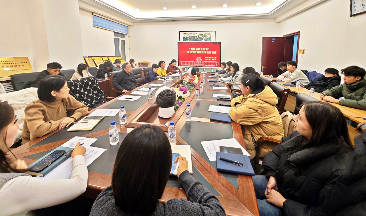 为深入学习贯彻党的二十届四中全会精神,铸牢中华民族共同体意识,关注少数民族新生成长,帮助同学们快速适应医学专业学习与校园生活,bevictor1946韦德官网关工委于2025年11月21日下午在离退休工作处会议室召开“牵手共筑大学梦”--关注少数民族老员工座谈会。会议由公司关工委副主任傅菁林主持。
